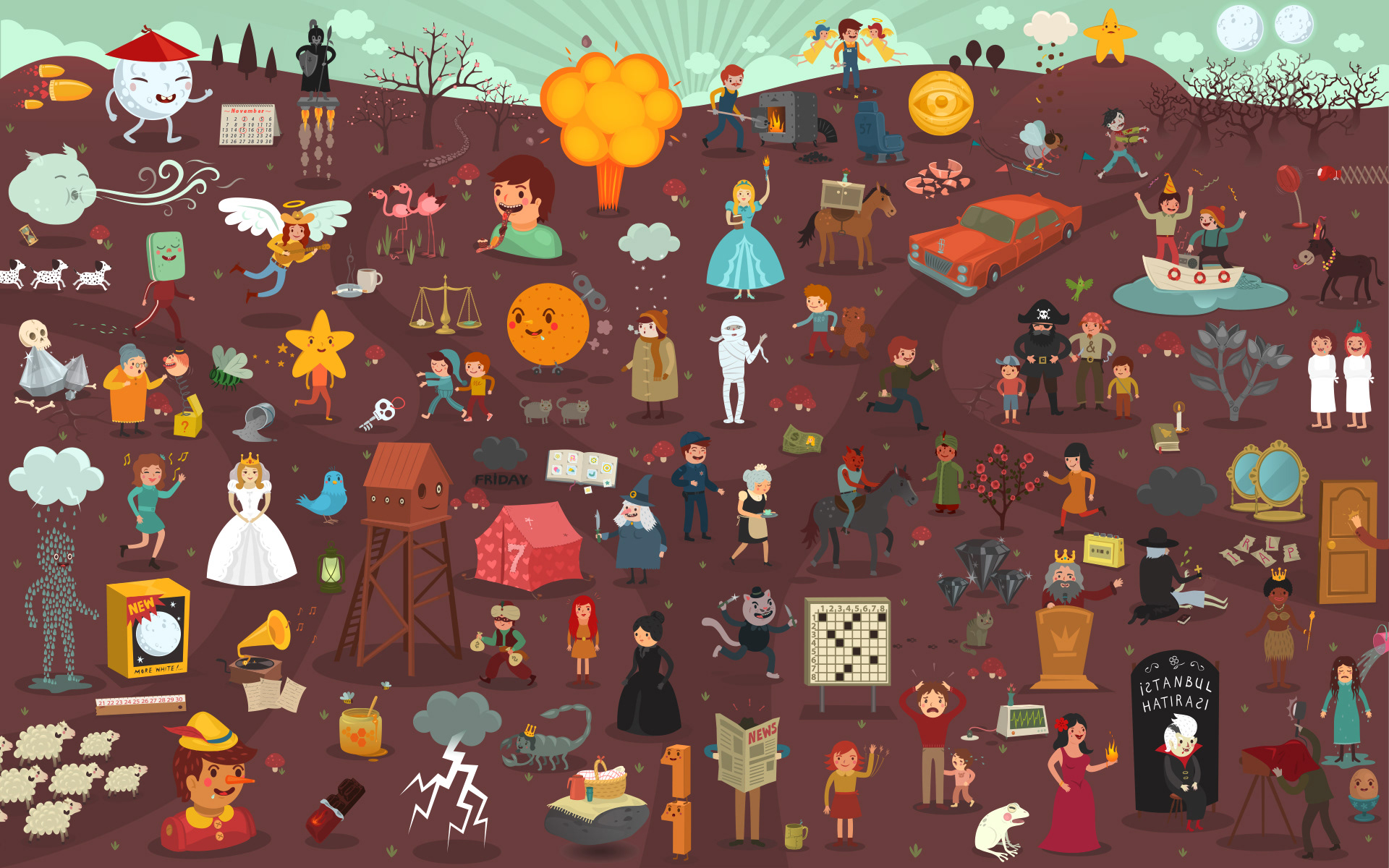 We hide 99 movies into the panoramic illustration.